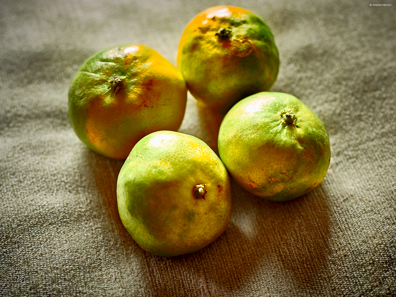 Tangerines on a pillow.